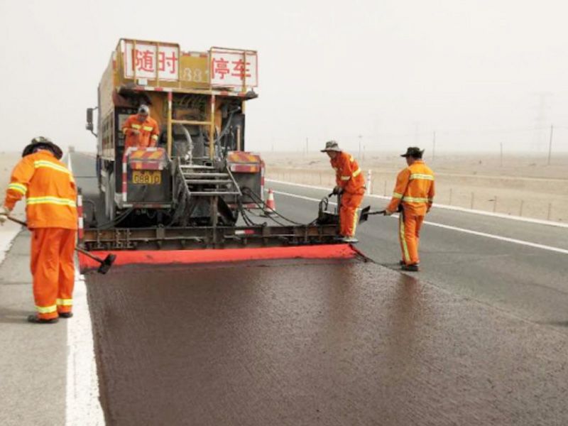 青海茫崖沙漠公路加纖微表處施工
